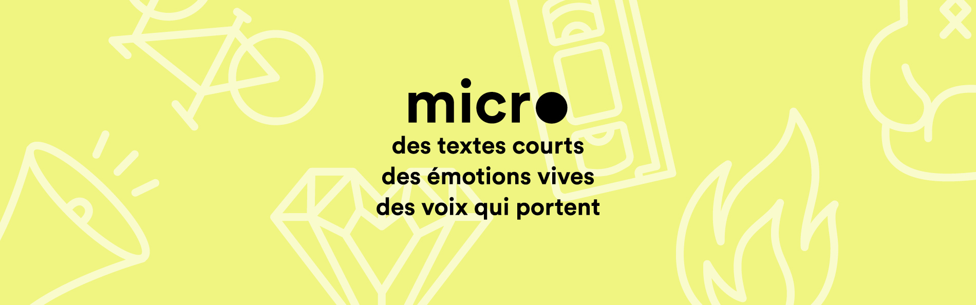 Micro propose aux adolescentes et aux adolescents des textes courts, à mi-chemin entre le monologue théâtral et la nouvelle, sur de sujets forts et actuels. Des textes de fiction qui prennent la parole avec émotion, humour ou poésie pour dire la réalité du monde d’aujourd’hui. Des œuvres écrites dans une langue empreinte d’oralité pour questionner, s’indigner, révéler, dénoncer ou simplement déposer des mots là où ça fait du bien.